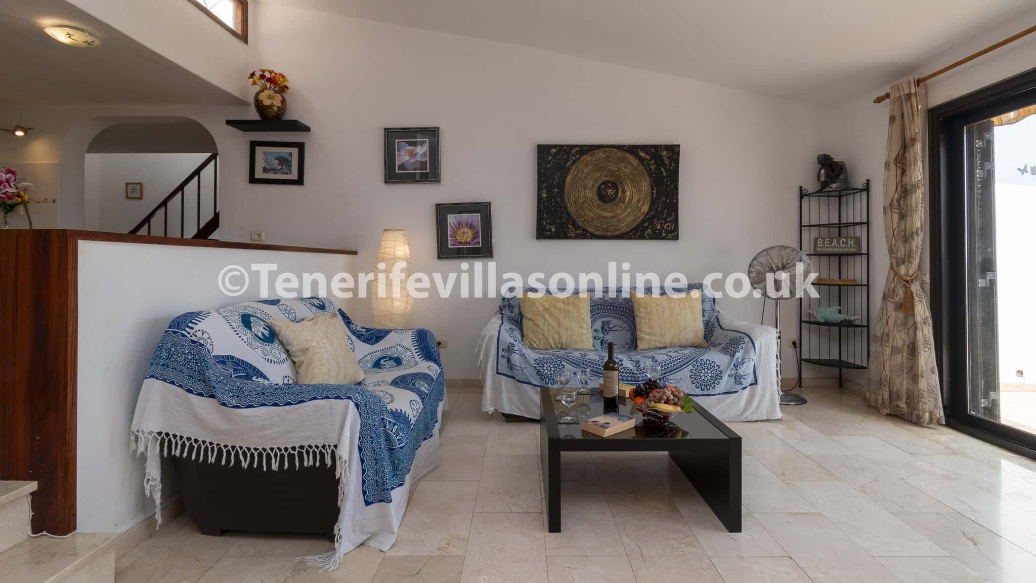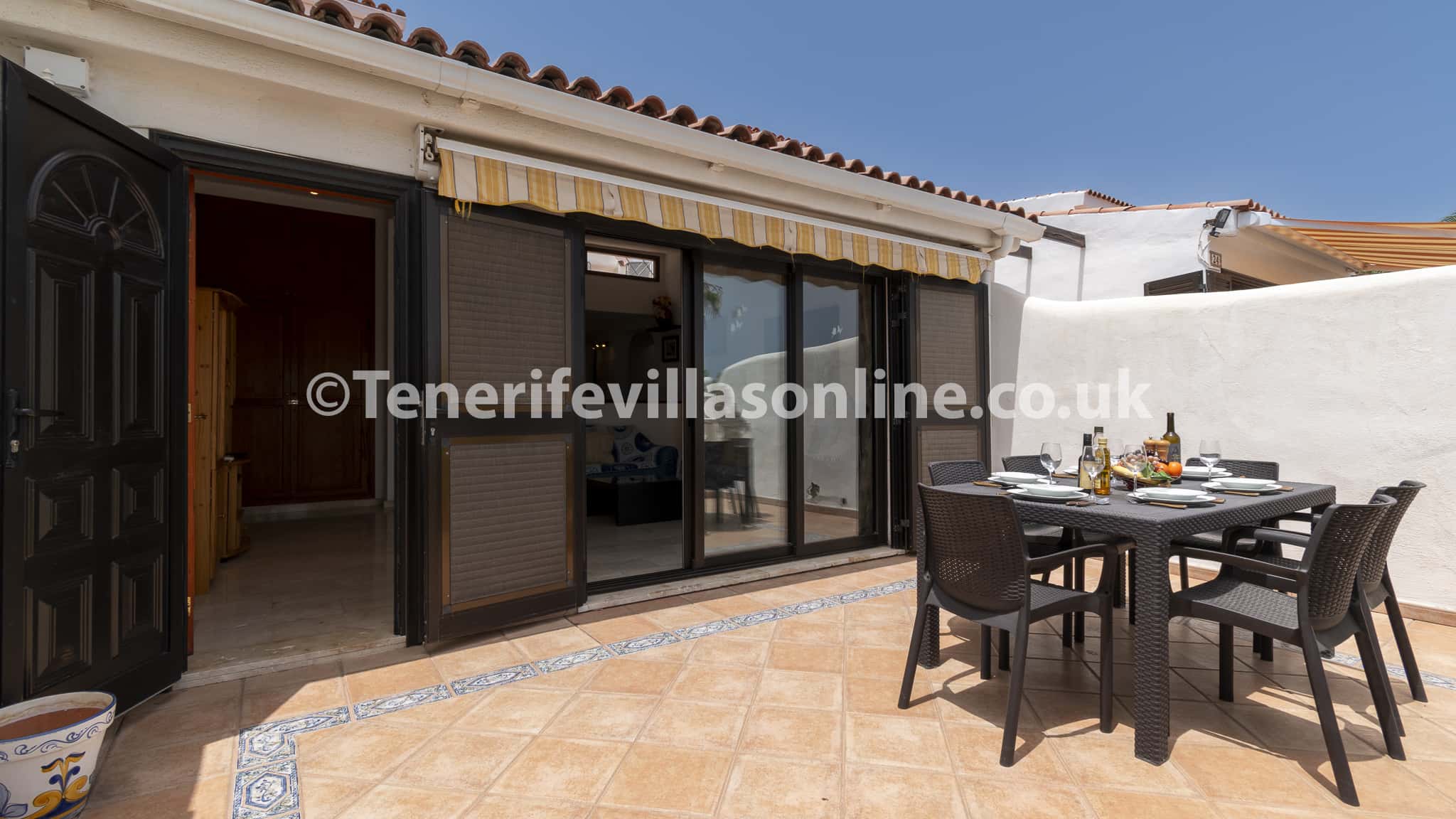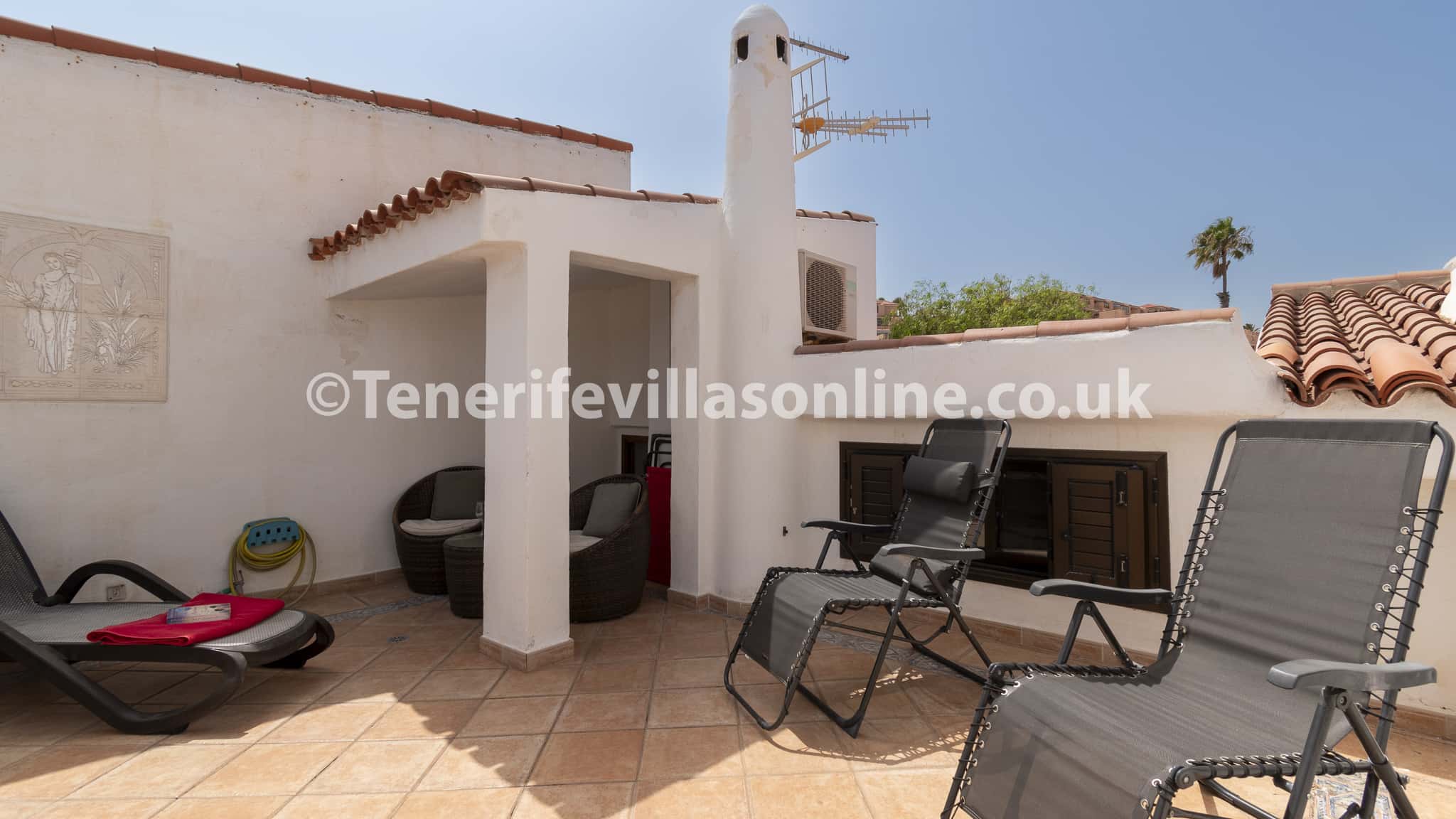We offer you this wonderful villa in the beautiful area of Golf del Sur, Tenerife. This cozy 3 bedroom, 3 bathroom villa offers guests a chance to unwind and experience the best of Tenerifes Scenery and beauty. With its attractive garden, a communal heated pool and cozy interior, this is the perfect getaway destination for the whole group to enjoy a pleasant retreat together. The sunny roof terrace is a great evening chill out spot well equipped with comfortable sun loungers and shaded seating area. It goes a step further by offering guests the most stunning sea and mountain views.