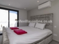Bi-folding patio doors separate the sun-kissed terrace and living area which holds a lush corner suite sofa with 80 inch TV, perfect for cosy movies nights! Adjacent to the living area, a fully equipped luxury kitchen/diner boasting state of the art appliances including a wine fridge and a breakfast bar for 4. All bedrooms have TVs and offer a serene sanctuary for rest and relaxation. The accommodation is fully air conditioned throughout.