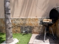 Exterior: artificial grass, dining table for 6, shaded pergola, comfortable seating area, BBQ, gardens, sun loungers, recliner chairs