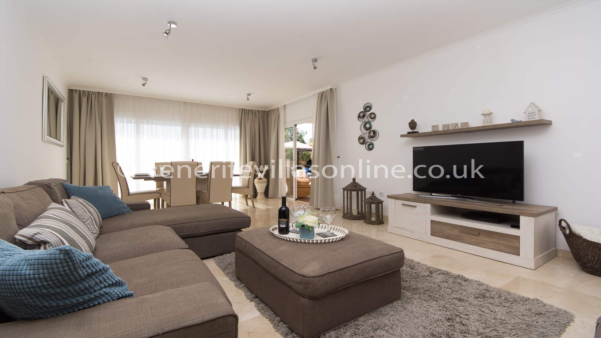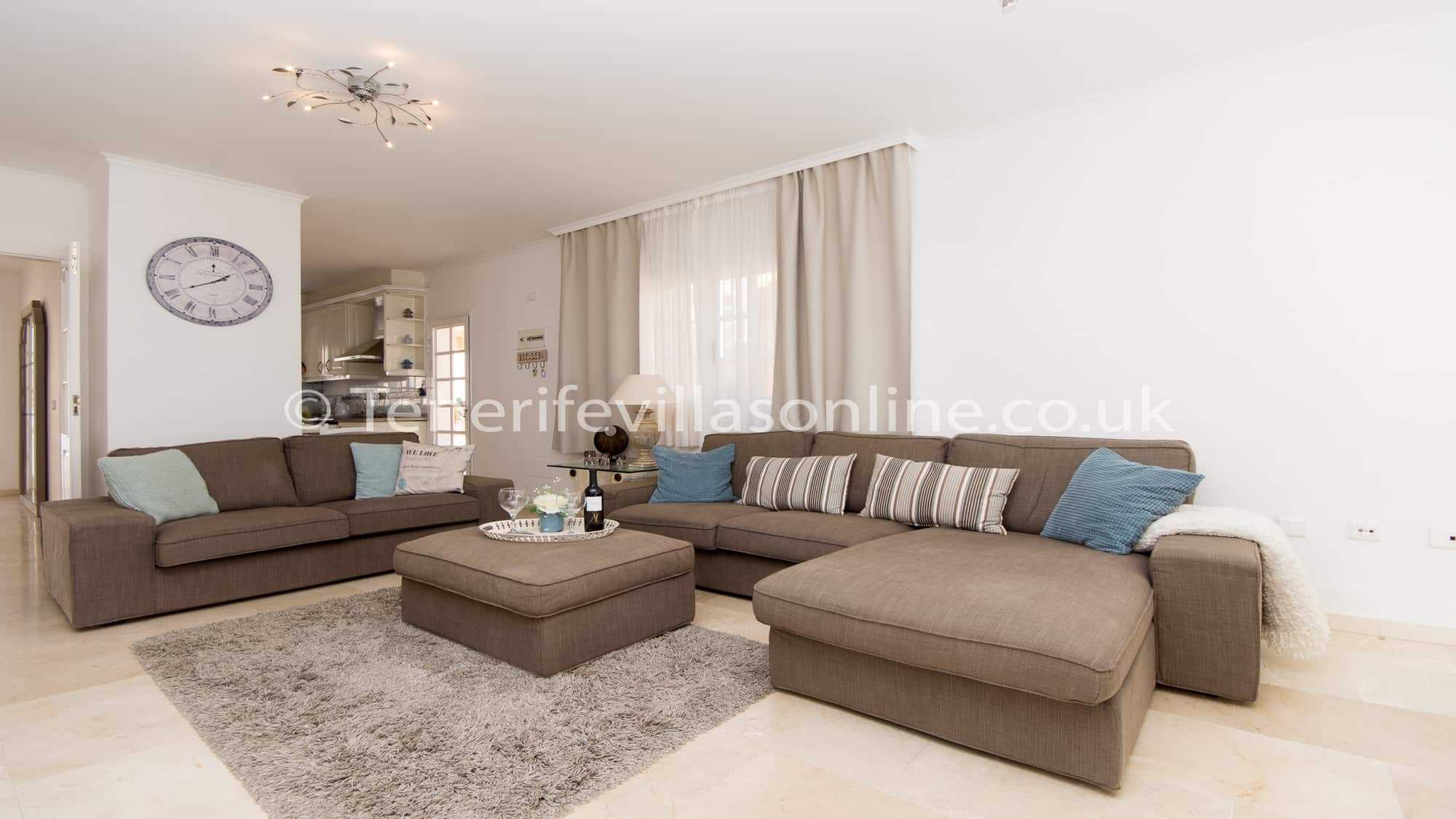 Lounge: L shape sofa, 2 seater sofa, 48 inch flat screen TV, DVD player, offers UK channels