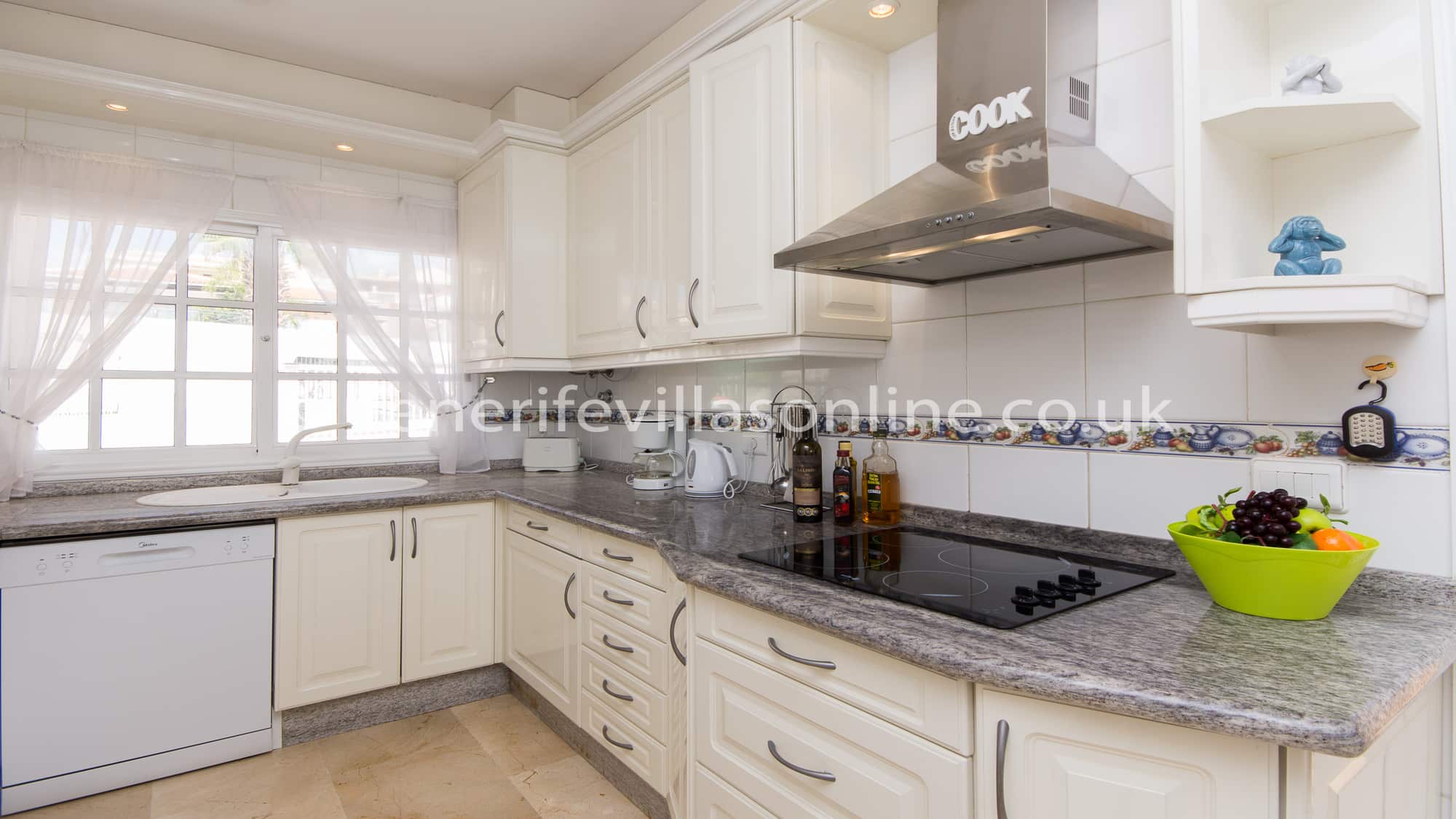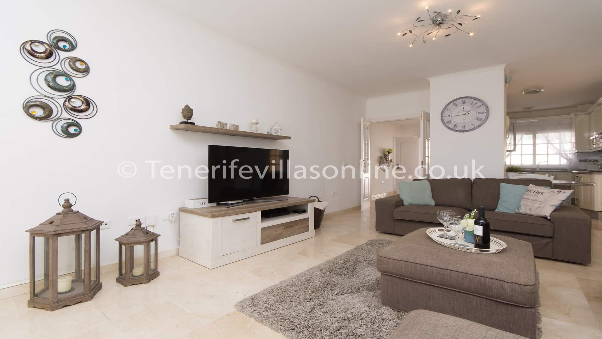 Tenerife Villas Online offers, to rent this spacious 3 bedroom 2 bathroom detached villa with private heated pool in the residential resort of Callao Salvaje, Tenerife. This Tenerife Villa is all on one level has been furnished to a good standard throughout. The owners have included some typical Spanish furniture along with traditional British style as well. The kitchen includes marble work surfaces, dishwasher, oven/hob, fridge/freezer, microwave, toaster, sandwich maker, iron with board etc. Off the kitchen is a door that leads to the utility area which includes the washing machine.