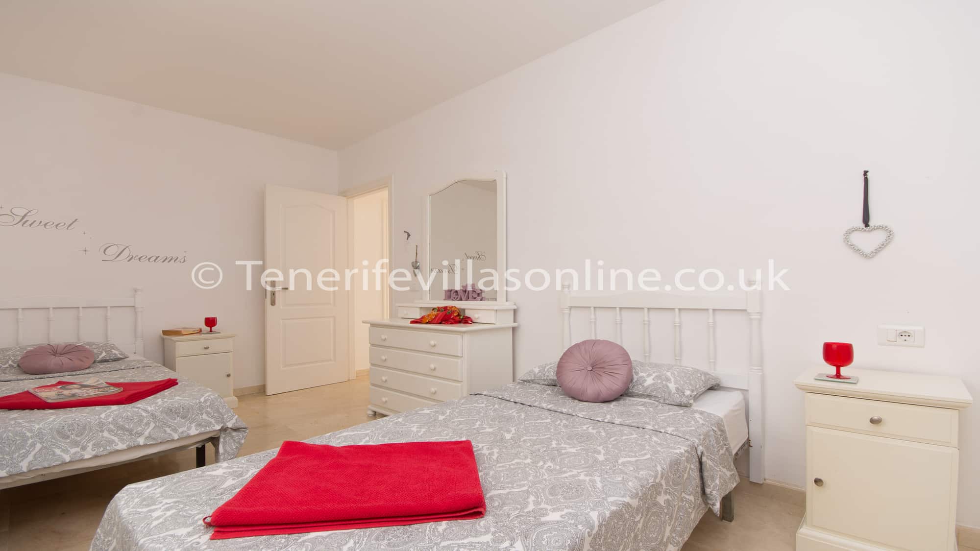 Bedroom 2: double beds, fitted wardrobes, ceiling fan