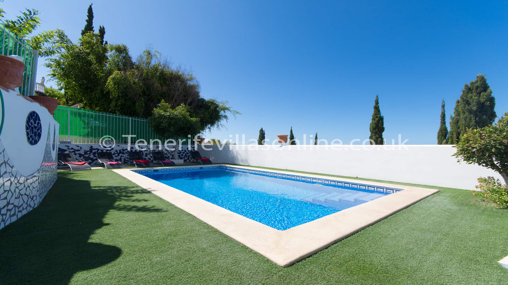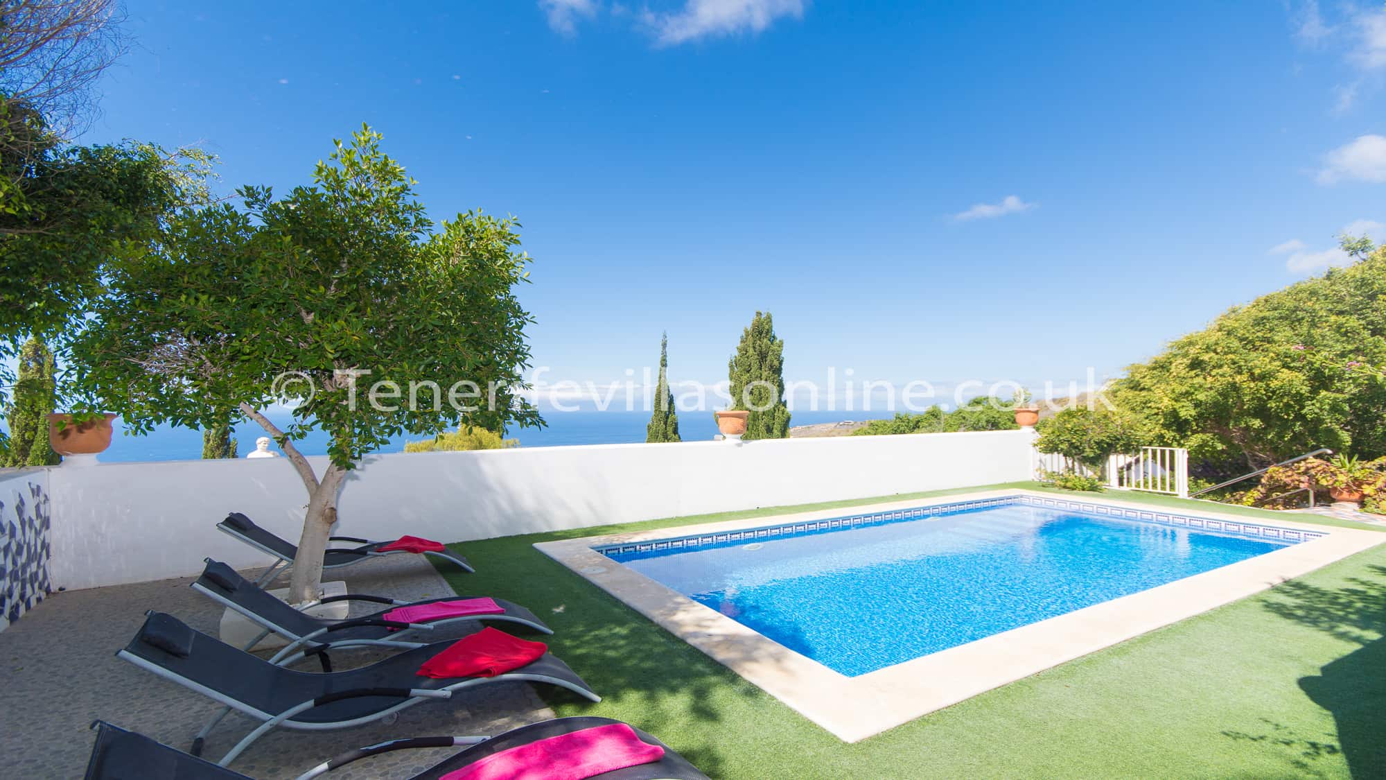 This villa is positioned in a secure hillside private development with a gated entrance. The location is set within an oasis of palm trees and tropical plants, the grounds are filled with traditional Canarian gardens and combined with picturesque views. This is the alternative side of Tenerife, sheer peacefulness and the only noise you hear is the gentle sound of birds chirping.