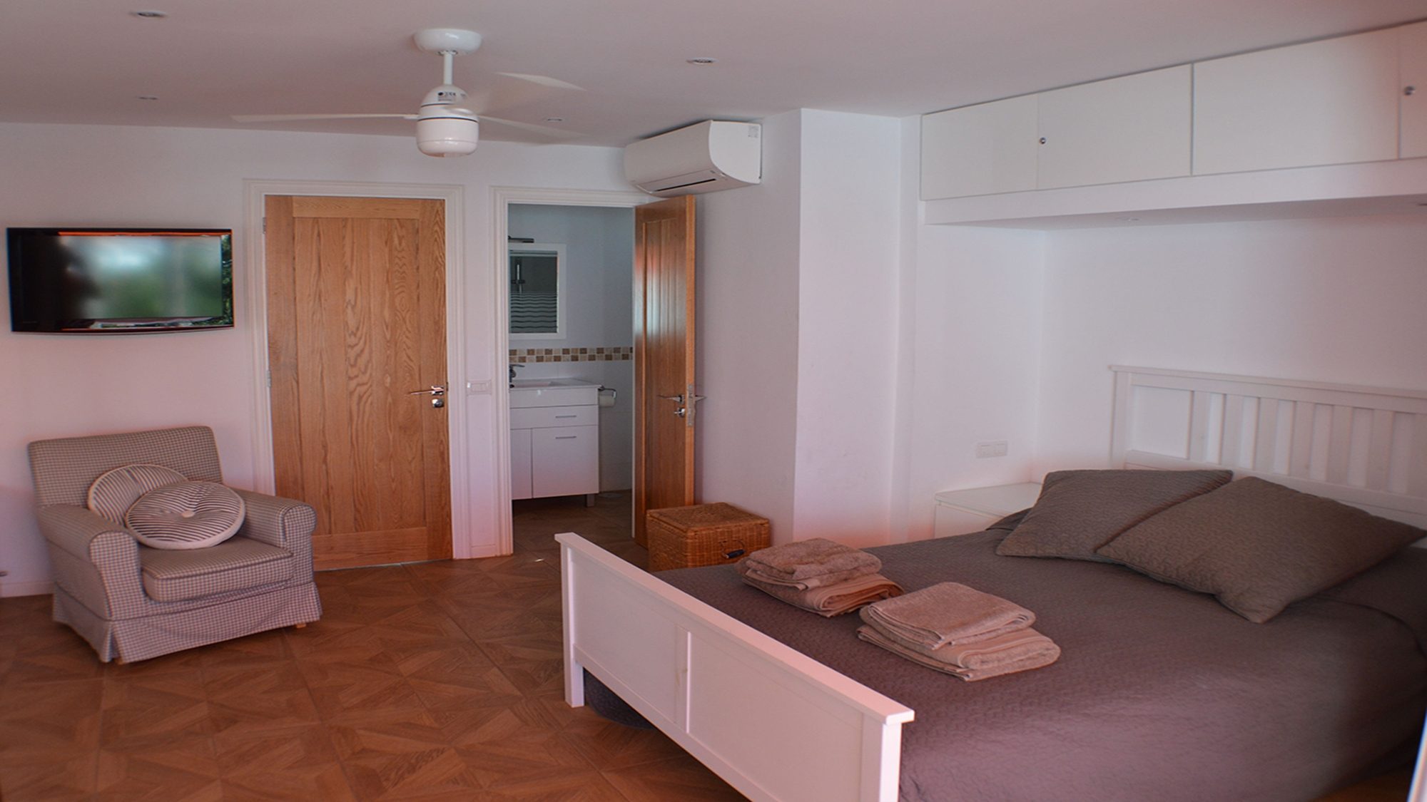 With space to host up to 9 guests, all 4 bedrooms are immaculate and include air conditioning and 4 en suites. The property boasts a modernized design and exquisite sea views, it is bursting with personality as the ideal accommodation for your holiday. Recline in comfort on the leather sofas in the living room, perfectly located in front of the 50 inch flat screen television. We invite you to cook in our elegant fully-equipped kitchen and enjoy your meal in our outdoor dining area under the automatic sun blind on the terrace. There is also an indoor dining area.