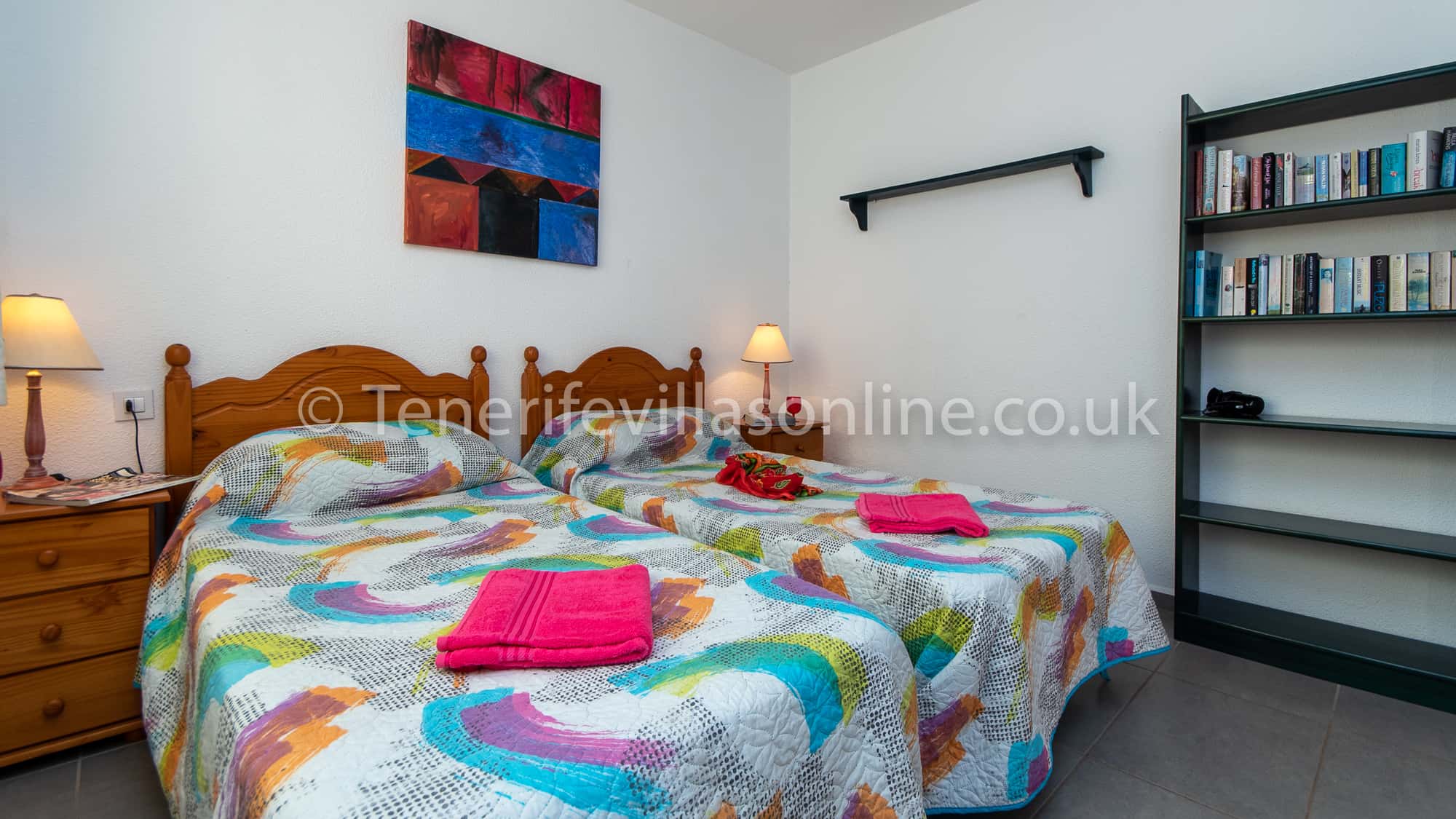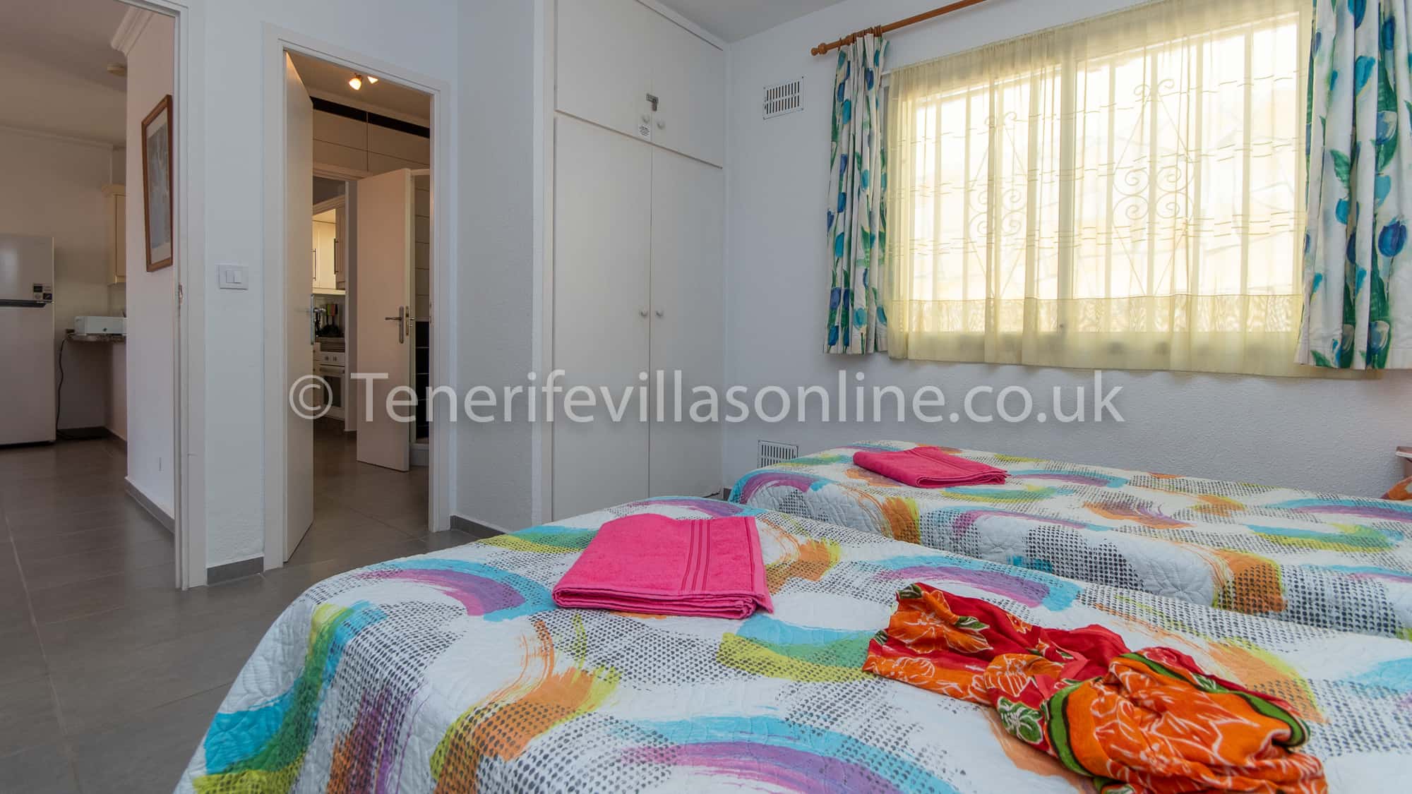 Bedroom 2: two single beds, fitted wardrobes, ceiling fan, ensuite