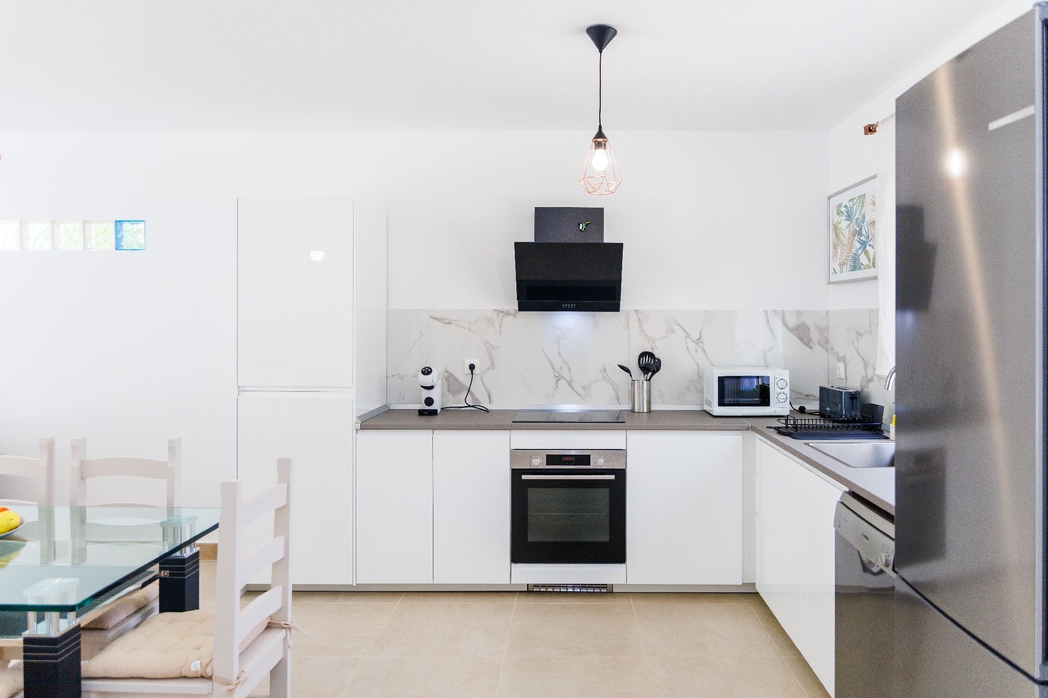 Kitchen: oven/hob, fridge/freezer, washing machine, dishwasher, kettle, microwave, coffee machine