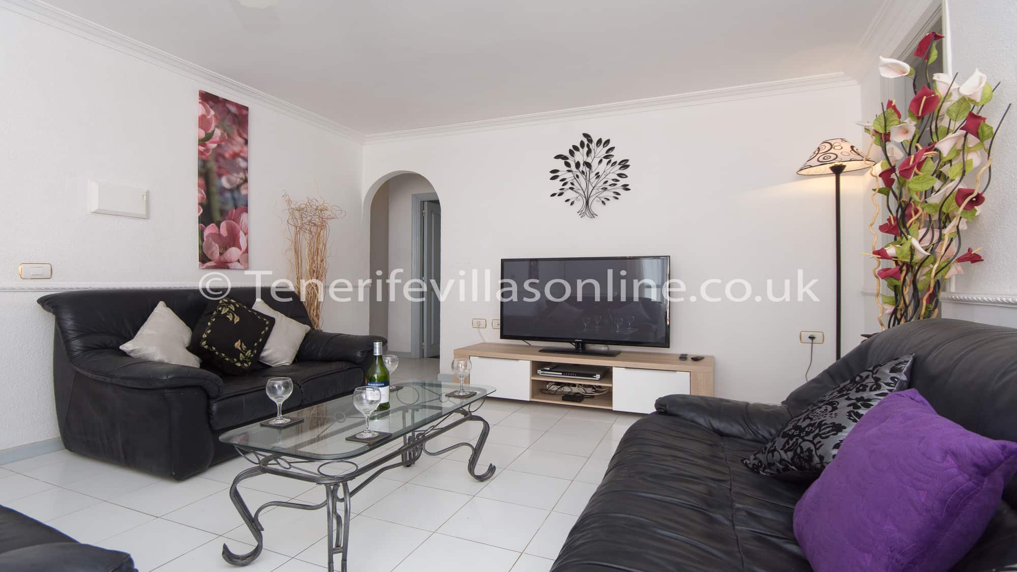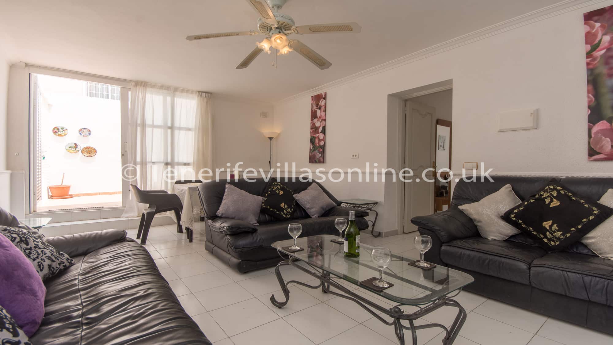 Lounge: 2 seater sofas (x2), 3 seater sofa, 40 inch flat screen TV, offers all UK channels including Sky movies, Sports, children TV, 6 live premiership football channels, over 2000 films, box sets & catch up, ceiling fan, patio doors to terrace