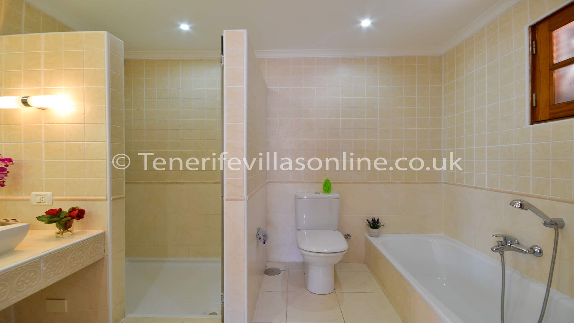 On the same level offers 3 bedrooms and shower room. Bedroom 1 has twin beds with matching curtains and a separate en suite which has a separate bath and shower. Bedroom 2 has a double bed and doors that lead to a small balcony as does bedroom 3 but does have twin beds. All bedrooms have new large fitted mirrored wardrobes and ceiling fans. There is a safe fitted in bedroom 3. The large main shower room has a huge walk in fully tiled shower and WC.