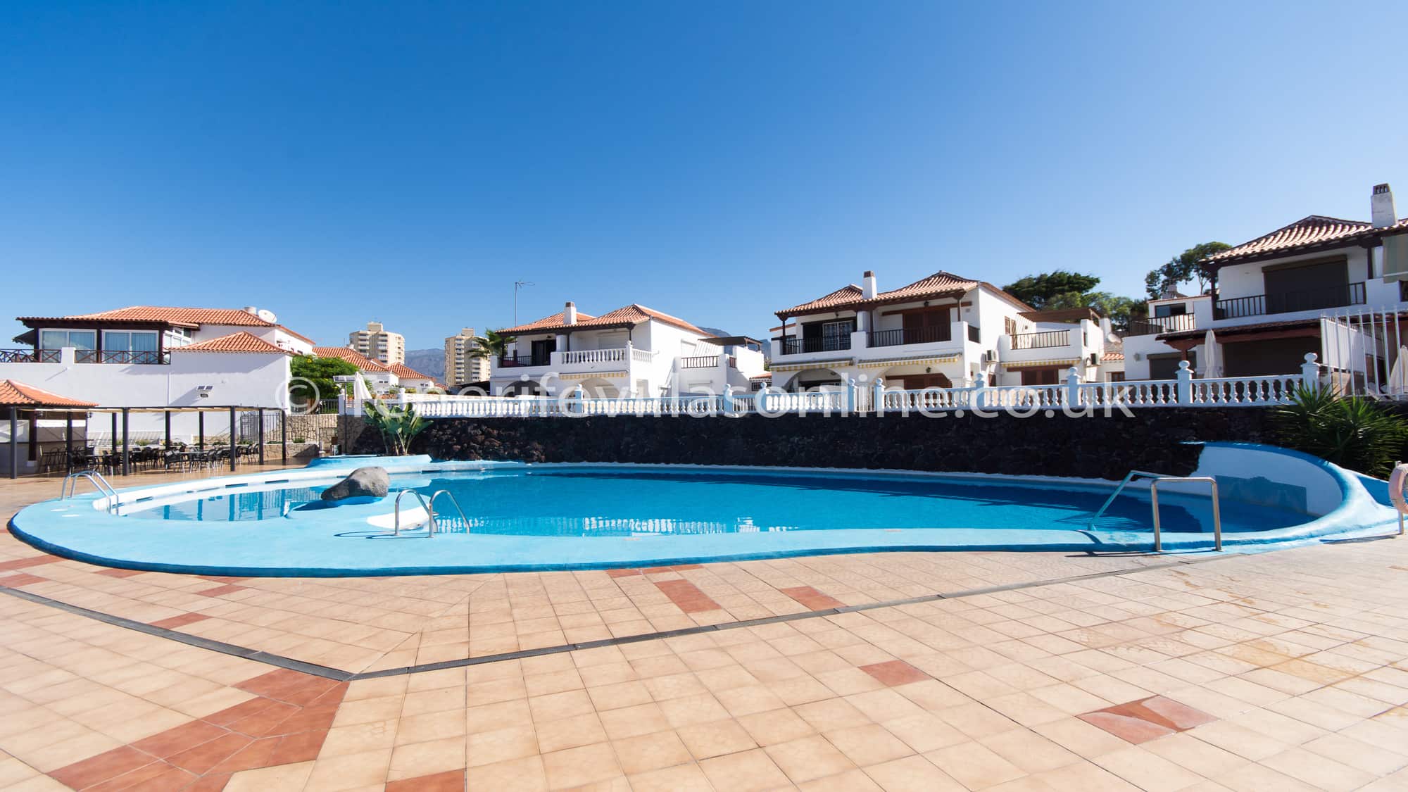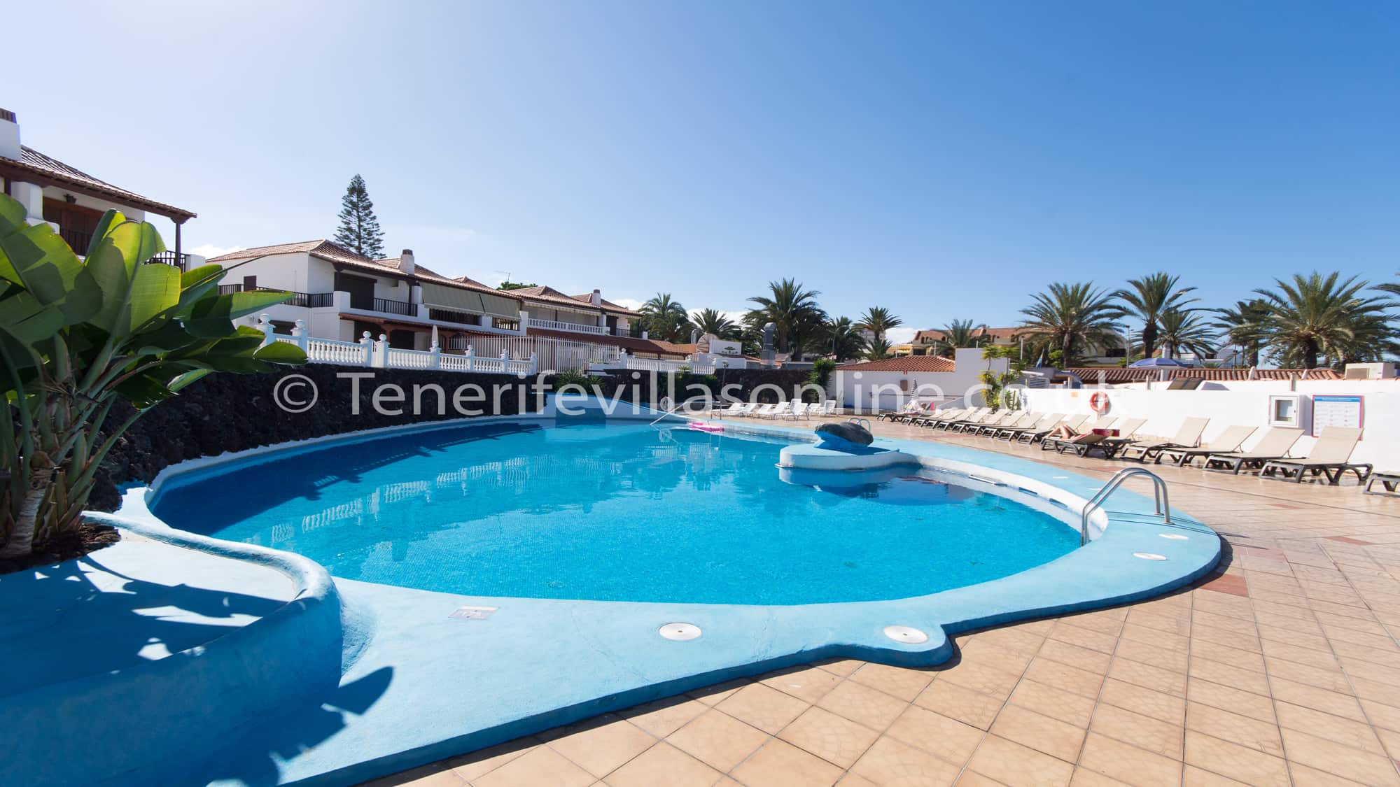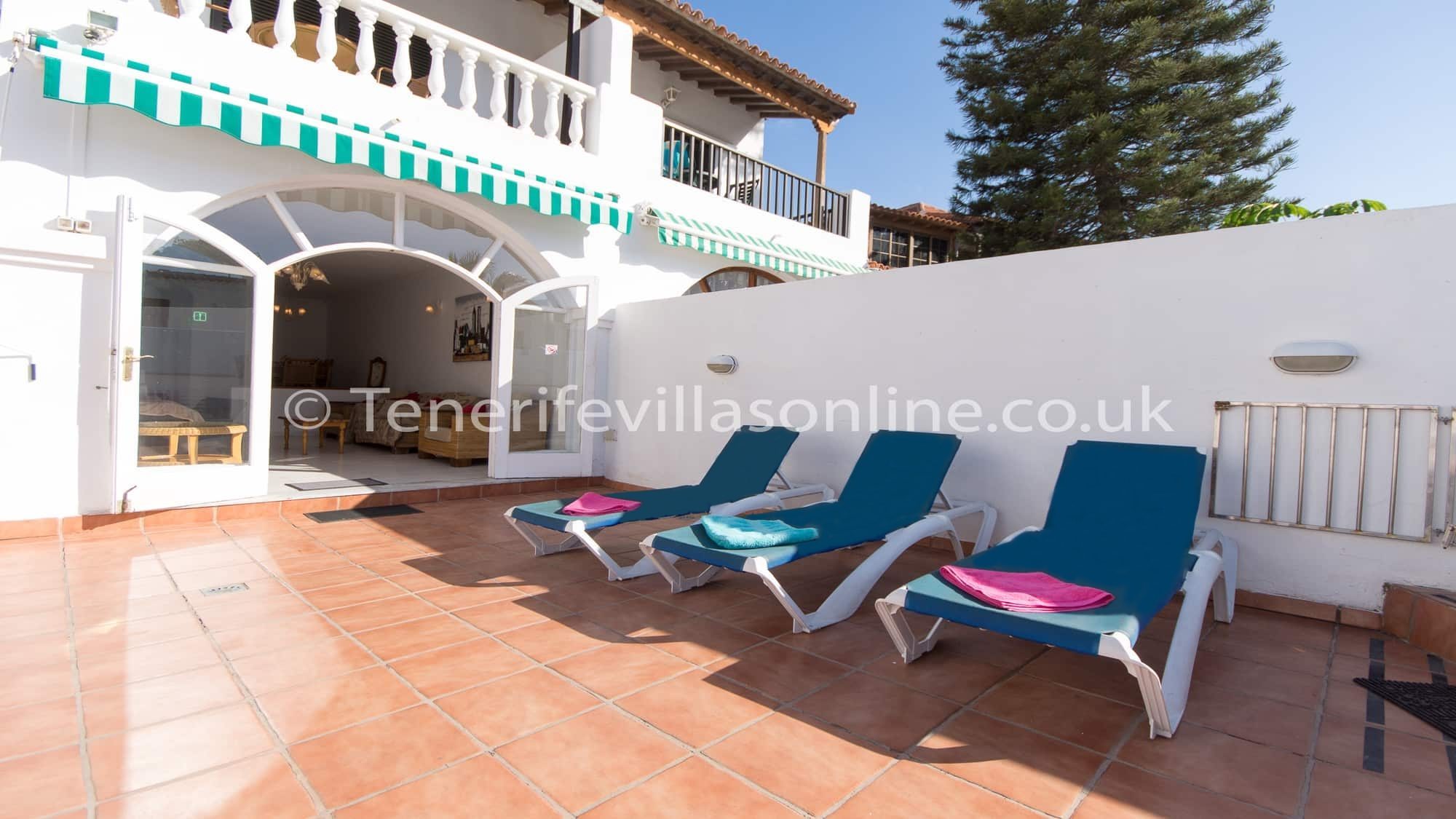 This villa is situated in a very popular area of Playa De Las Americas and only 400 meters from the beach. Immediately outside the complex is the large number of supermarkets, bars, restaurants, shops, banks and amusements arcades etc. All amenities in this busy area are on your doorstep. During the evening many bars, restaurants and nightlife comes alive with everything that Costa Adeje has to offer. Although the property is in a busy area, the complex remains remarkably quiet of a night. Car hire is certainly not required.