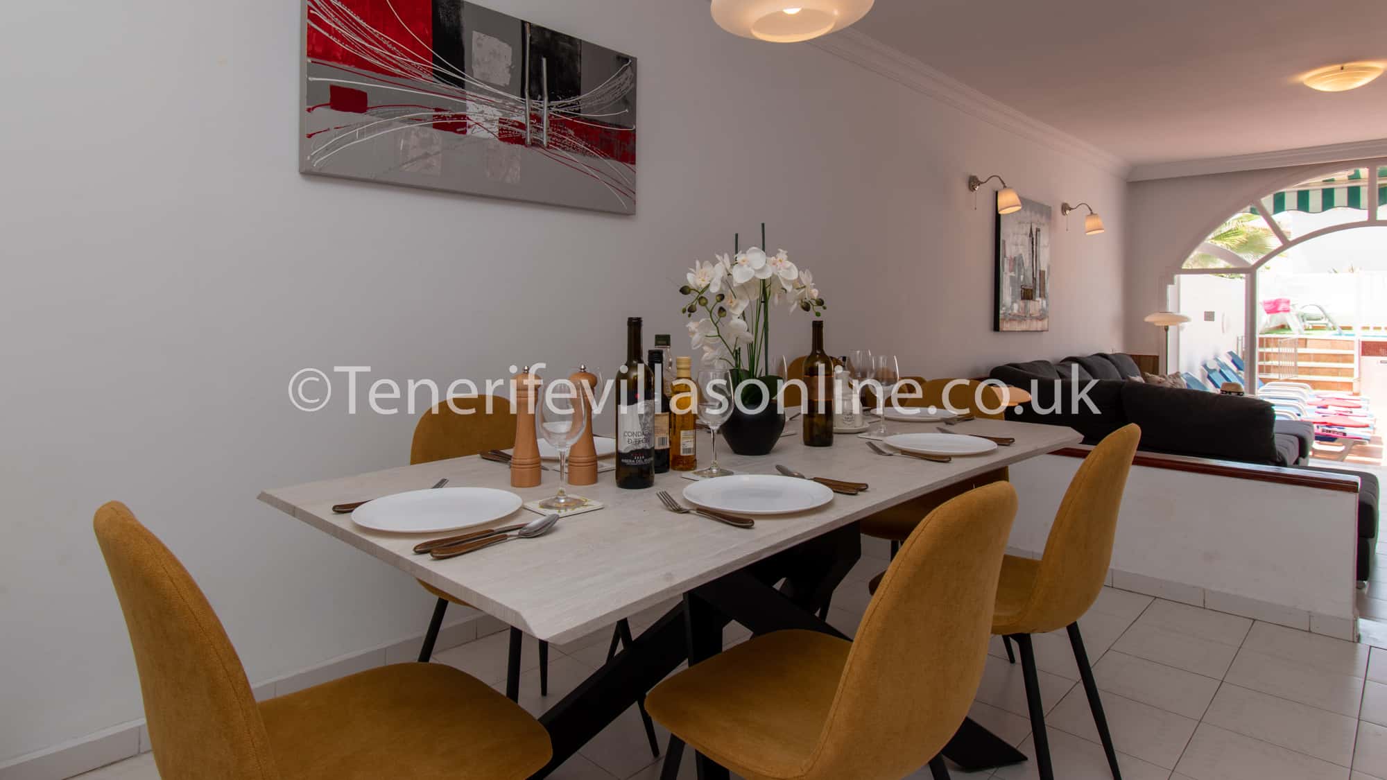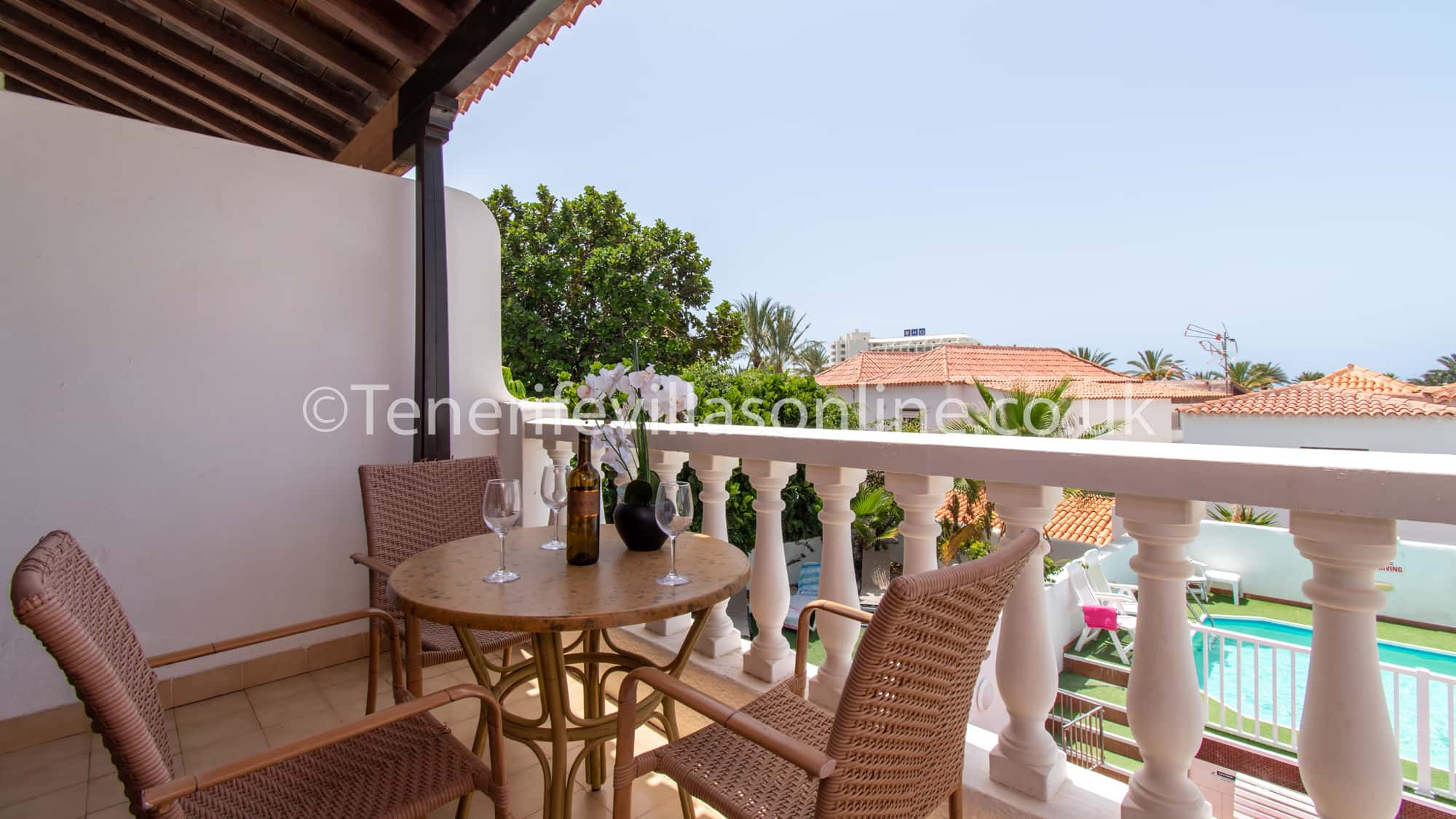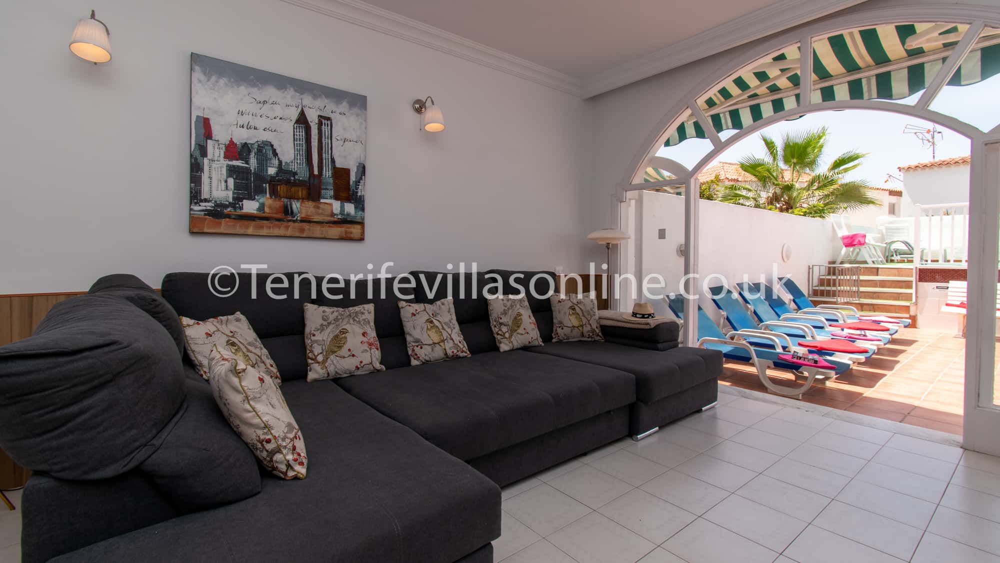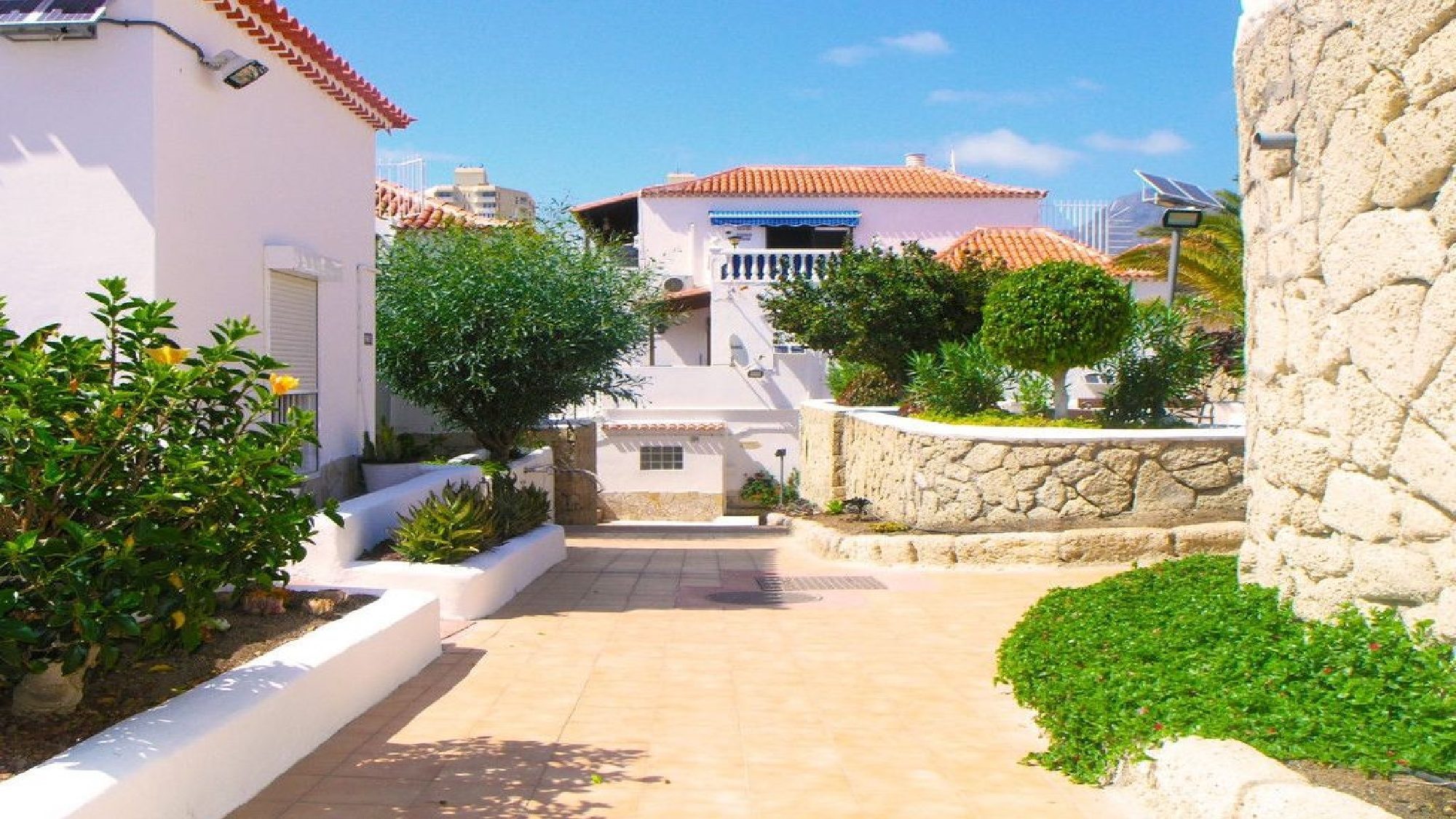 This villa is situated in a very popular area of Playa De Las Americas and only 400 meters from the beach. Immediately outside the complex is the large number of supermarkets, bars, restaurants, shops, banks and amusements arcades etc. All amenities in this busy area are on your doorstep. During the evening many bars, restaurants and nightlife comes alive with everything that Costa Adeje has to offer. Although the property is in a busy area, the complex remains remarkably quiet of a night. Car hire is certainly not required.