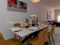 The interior spans across 3 levels, includes a stylish décor throughout and most rooms benefit from air conditioning. The ground level holds the fully equipped kitchen with utility room including modern appliances ready for home cooked meals for the group. Relax in the comfy open plan living/dining area, complete with an L shape sofa and TV with UK channels, here guests can watch their favourite shows. The ground level also holds patio doors to the private terrace, bedroom 2 and a bathroom.