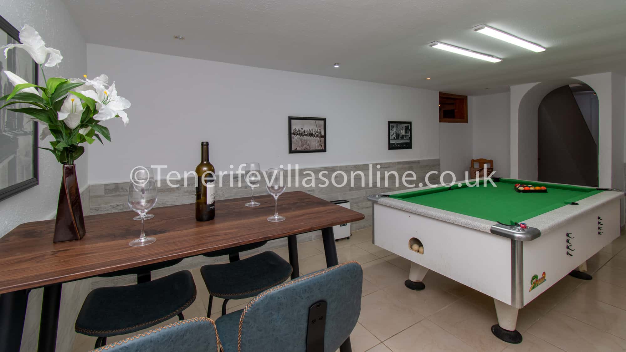Games room: pool table, darts