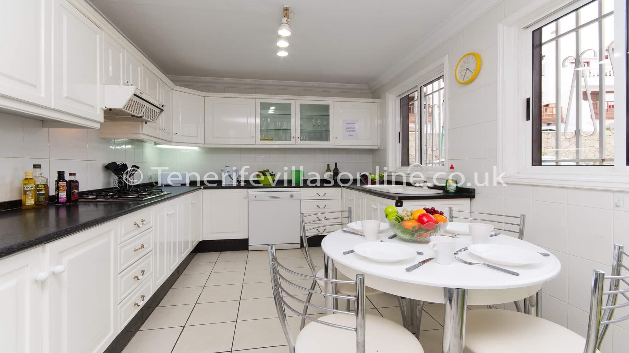 As you can see in photos this villa is average standard and is not luxury, it’s not recommended for those seeking high quality accommodation. However, considering its location, distance to the coast, it has a private heated pool, size of the property and number of bedrooms – the accommodation is excellent value for money.